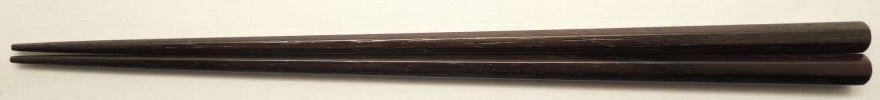 柾目面:ほぼ黒褐色のブラックハカランダです。サイズは大きめの男性用で非常に渋くてカッコイイお箸です。