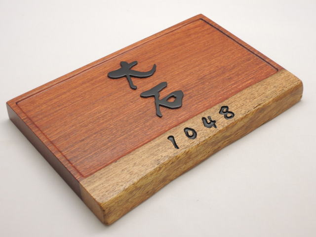 原板/花梨材 塗装/3分艶消し 「縁有り浮き彫り」と「彫り文字」のハイブリッド表札です。